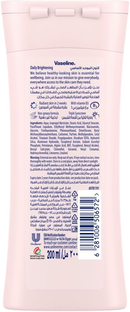 • Vaseline Healthy Even Tone proprietary technology offers advanced brightening and moisturization for healthy looking, radiant, and even skin